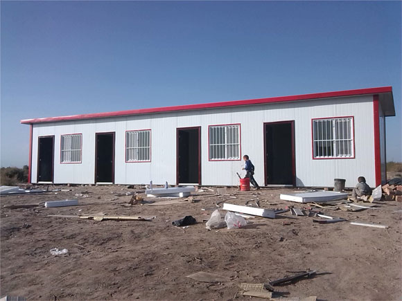 造型美观,价格适宜,经济实用。具有防台风、抗地震、隔热、隔音、保温、防潮等特点。装拆方便、安装工期短、特别适用于应急工程的需要。房屋自重轻,1辆5吨的货车可以装载80M2的活动房全部构件,运输既方便又节省。规格化的标准构件,可根据用户需要组装各种面积大小不等,用途不同的活动房。磷镁活动房的主体材料是磷镁夹心活动板,其特点是隔热保温效果好。安装、拆迁方便。产品特别适合大型厂房,建设工程指挥部、项目经理部、市内建筑工地,办公、职工宿舍、伙房、餐厅、仓库、水泥库及大型工地的整体性生活区用房。